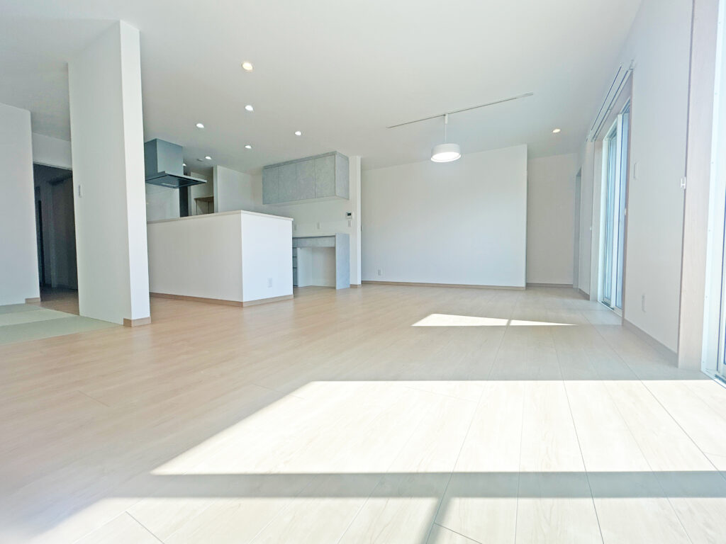 大きな窓からたっぷりと光が差し込む、明るく開放感あふれるLDK。