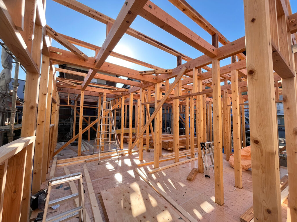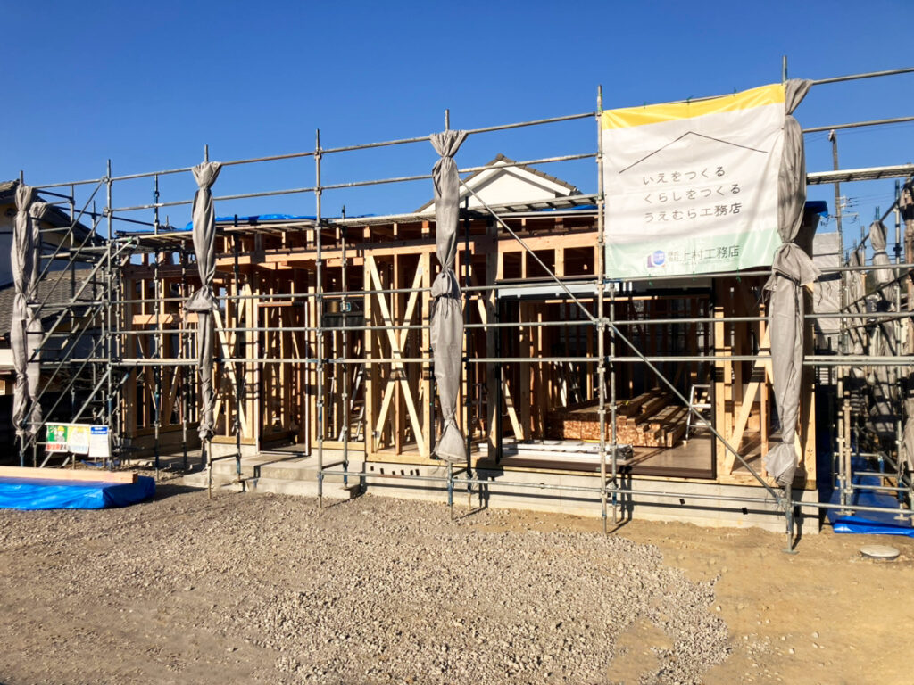 寒さの厳しい時期ではありますが、安全第一で声を掛け合いながら作業を進め職人一人ひとりの丁寧な仕事が光る上棟となりました。